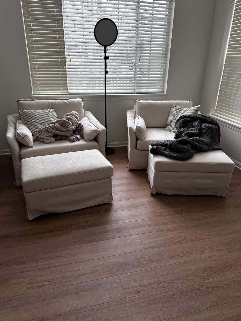 This space came with incredible architectural features, tall ceilings, oversized windows, and an abundance of natural light – but also felt cold and disconnected. The scale of the room made it difficult to create a layout that felt intimate or inviting.